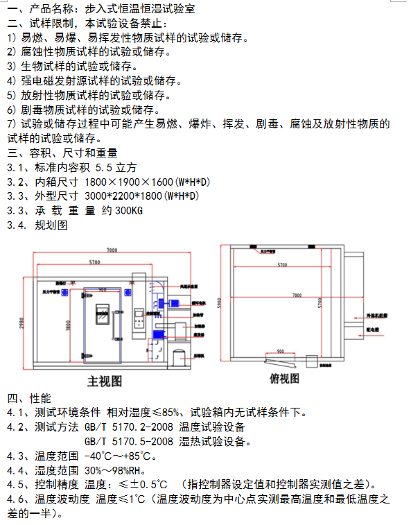 步入式恒溫恒濕試驗(yàn)室技術(shù)參數(shù):